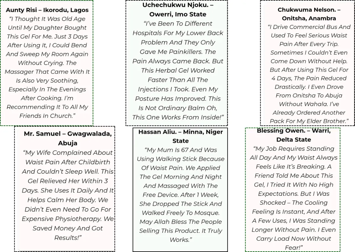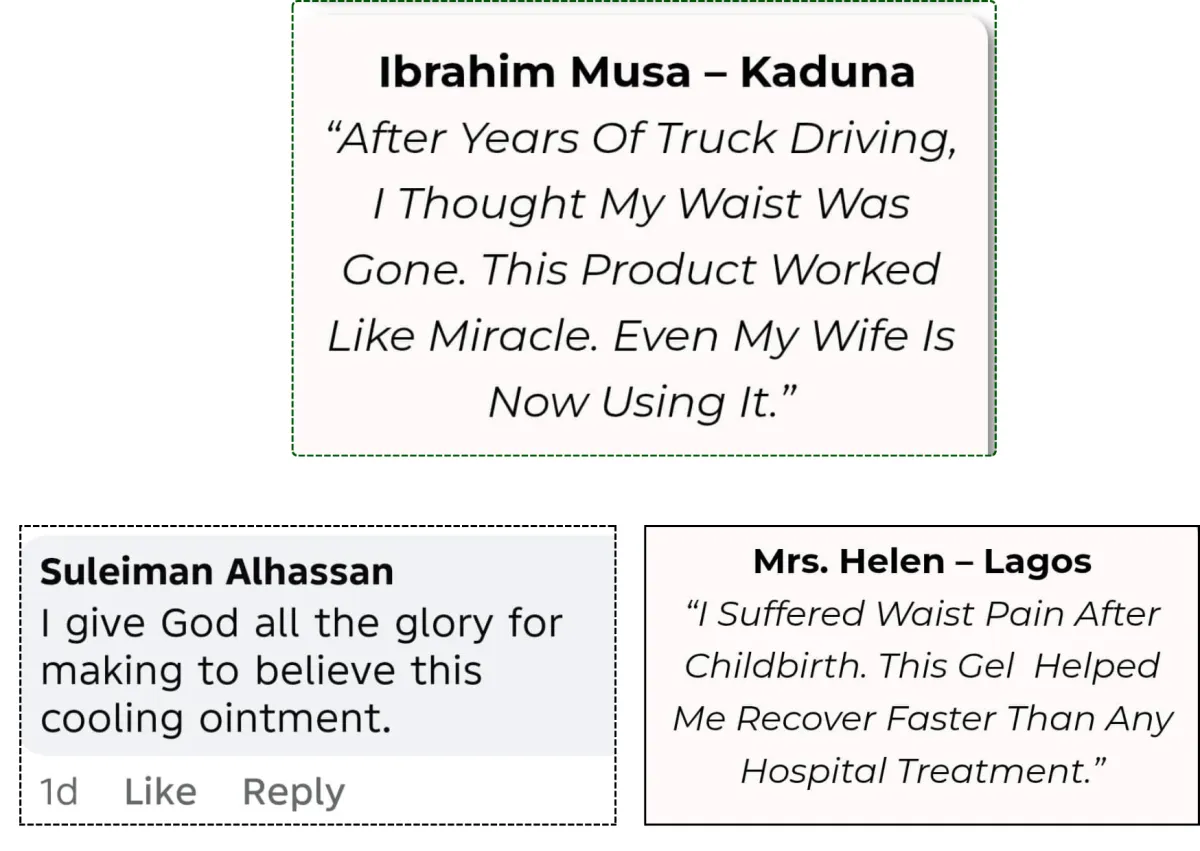 Try it for 14 days. If you don't experience significant relief from your back pain, simply contact us and we'll refund every naira ; no questions asked.